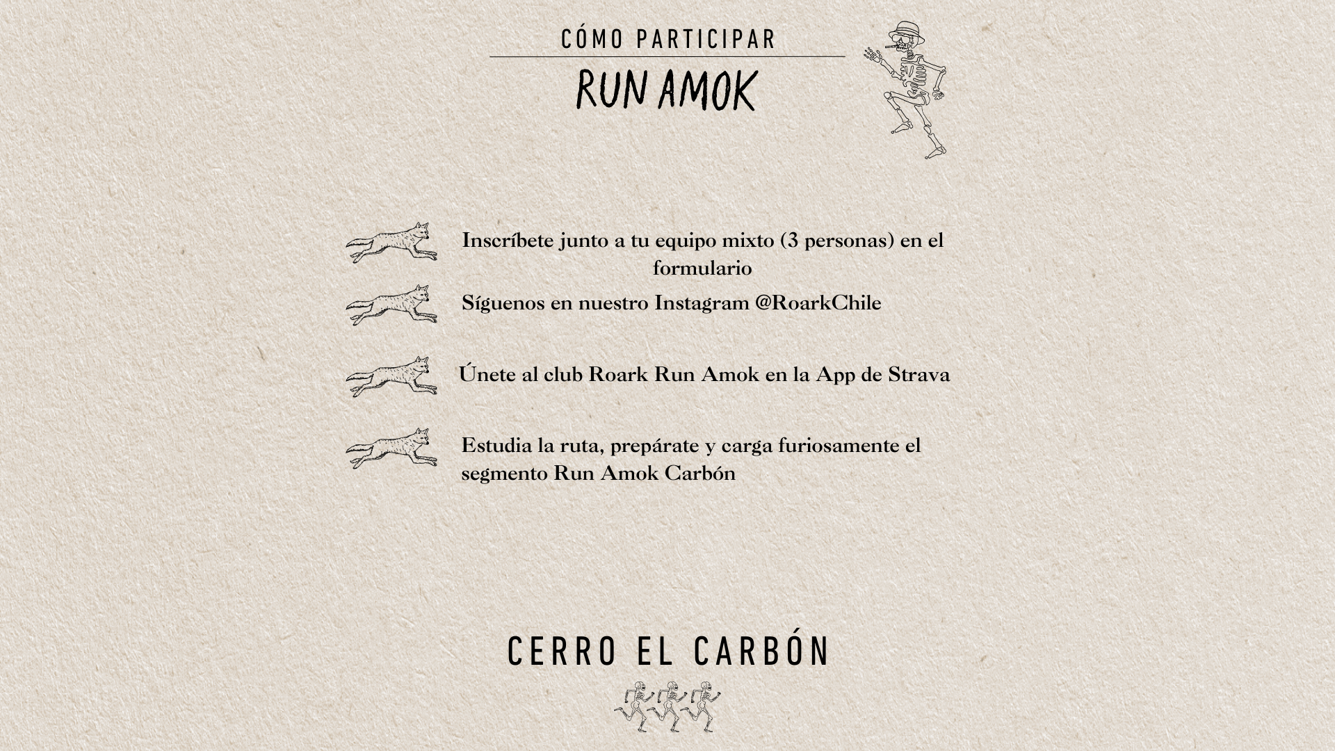 Para participar del desafío Run Amok, debes inscribir un equipo de 3 corredores en el siguiente link: INSCRIPCIONES.